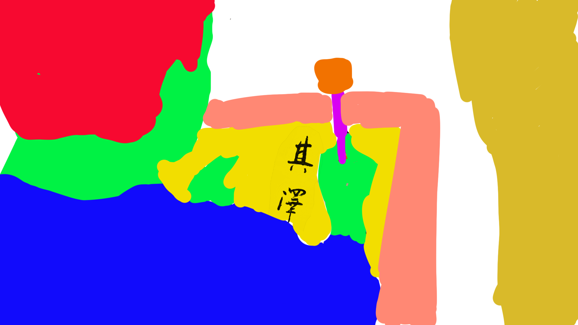 All nice images, but not “over the shoulder.” I am finding that I am missing the control I get when drawing and would love to be able to start with a rough sketch - I eventually tried with ComfyUI and the image to image generation by drawing an image to start with. I used their own example which is drawn very much like the image below using different colours for different parts of the body - which gave me a very strange result. (The short version of the prompt is over the shoulder of Chinese boy doing calligraphy - in 1932)